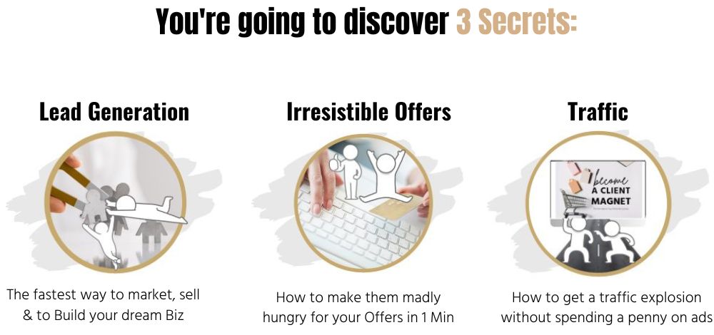 It’s like holding a map, guiding you step-by- step from struggle to success. Turning you into a client’s magic and make them beg for your offers.
